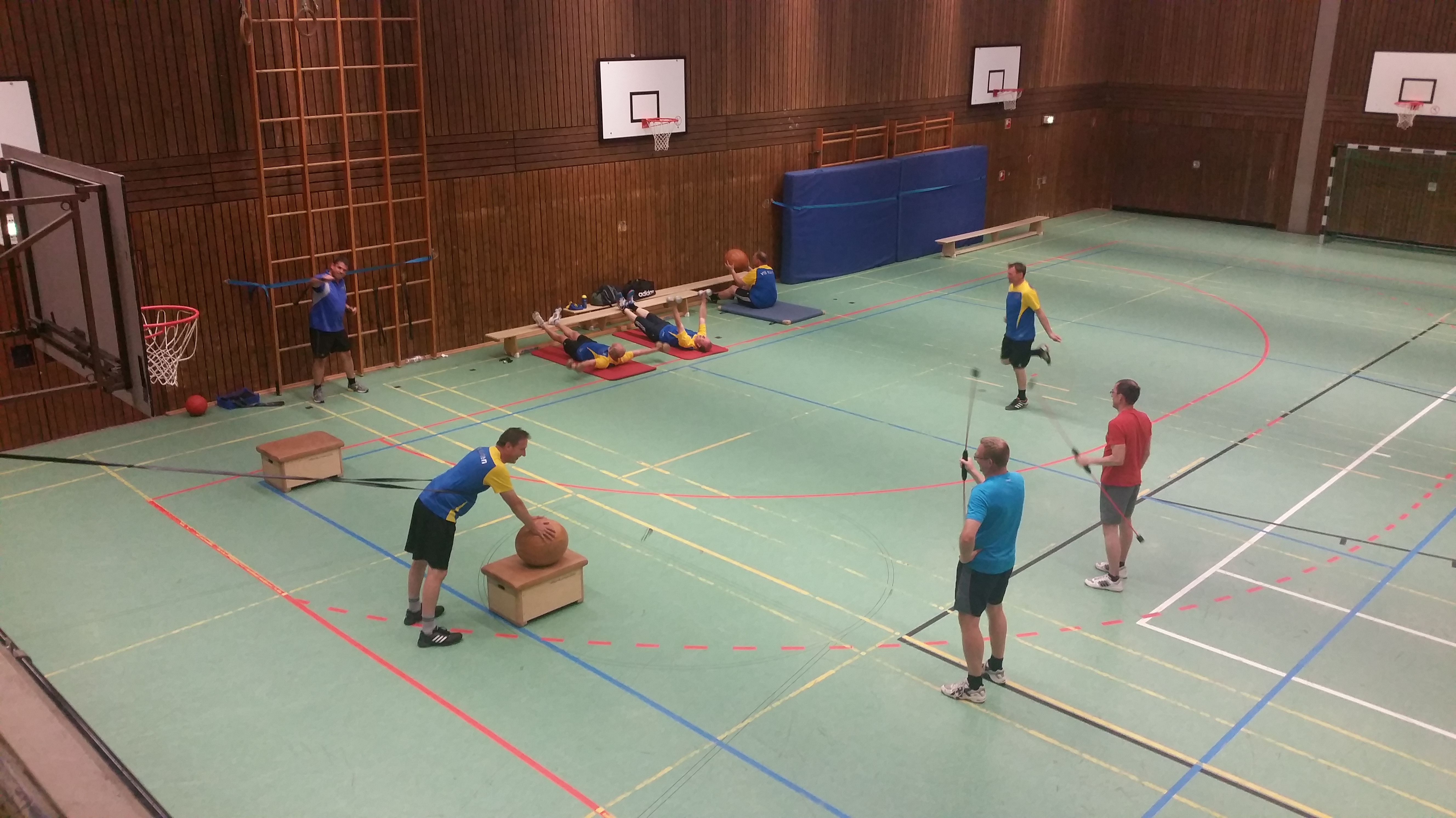 oder Zirkeltraining werden abwechselnd verschiedene Ballsportarten (Hockey, Basketball, Fußball, Handball etc) gespielt. Jeder das was er kann !